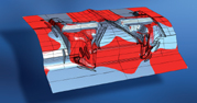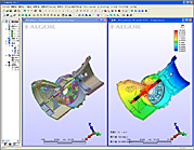 1.金型設計を効率化するオプションソフトウェアCompensator(コンペンセイター):FEM解析ソフトのデータを取り込みThinkDesign上で金型見込み形状を作成でき、板金部品のプレス成型時に発生するスプリングバックを考慮した金型の見込み形状作成を短時間で実現します。この工程では、金型見込み形状を最適化するために一度作成された金型見込み形状を再度シミュレーションし見込み形状を作り直すといった作業が繰返される場合があります。Compensatorを利用すると、この繰り返し作業を自動化することもできます