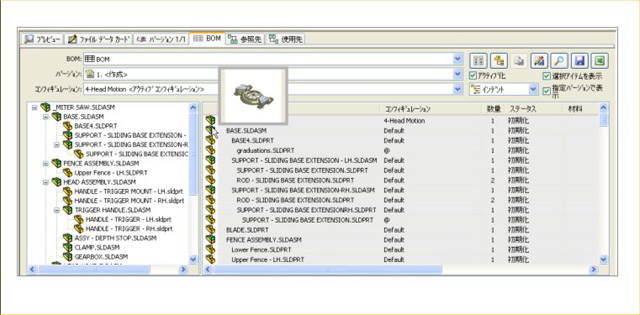 SolidWorksの仕掛管理から履歴管理までの構成管理(部品構成、依存関係)をサポート