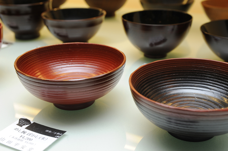山田:高い安いというのは難しいなと思っています。焼き物でもガラスでも高いものはいくらでのあると思います。むしろ、お客様には「漆器は晴れの器」という偏ったイメージだと思います。おそらく蒔絵が入った塗装、重箱などのイメージが強すぎるんです。焼き物と同じように、漆器にもデイリーの器もあれば、晴れの器もあります。もちろん、機械でばんばん作れるわけではないので、100円商品にはなりませんが、デイリーの器はそんなに高くない。うちで扱っているものだと、お椀で4,000円、お箸で2,000円くらいですね。