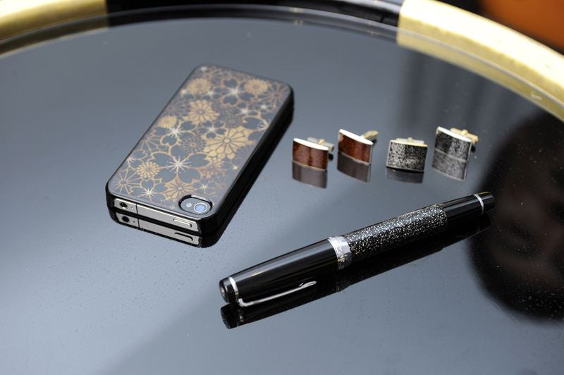 うちみたいな企業ブランドで出しているものはすごく少なかったので、そこにビジネスチャンスがあるんじゃないかって話が1つと、蒔絵の万年筆というのは美術品的なものが多かったので、うちらしく、普通の人が自分のために使う、そういう万年筆を作るというコンセプトで提案しました。せっかくだからカフスも同じ柄で作り、腕にカフス、胸に万年筆、そんな人が1人でも増えたら嬉しいみたいな。