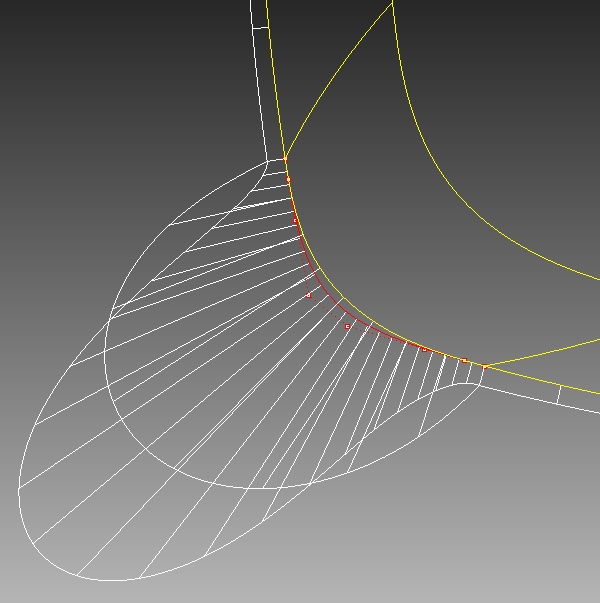 2)カーブの端点は必ず、一致させておく。