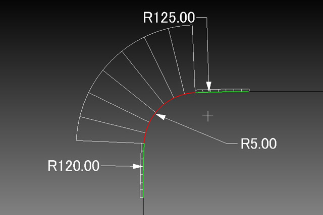 Fig-44ではアプローチR同士に、半径5のフィレットを作成している。