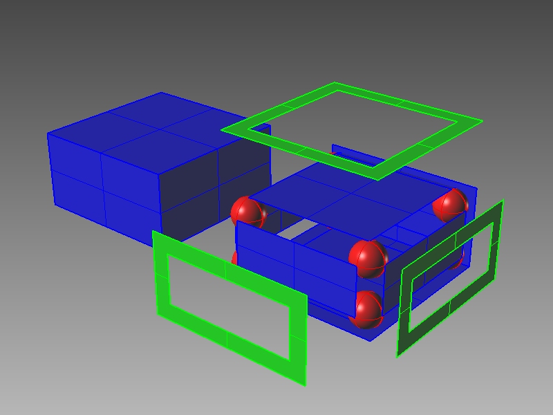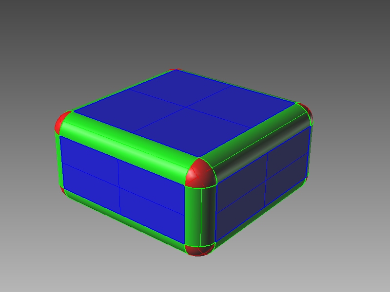 この筐体は直方体なので、各コーナーに、1/8の球を配置し、各コーナー間を1/4円弧を直線的に押し出したサーフェスが作成されることになる。