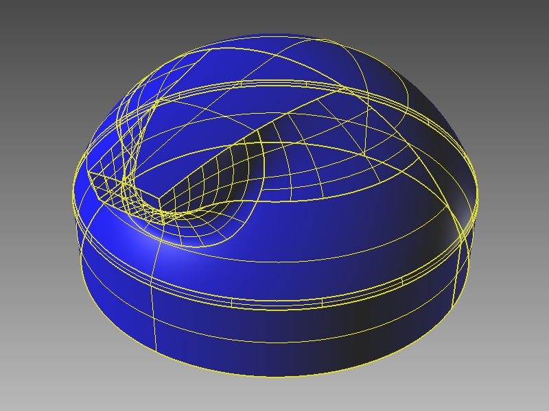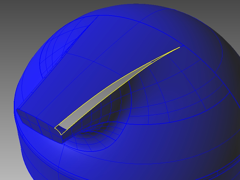 キャップ上面部は、一方の終端部は、半球のエッジに接しているため、3辺になるようなトリムを行っている(Fig-69)。