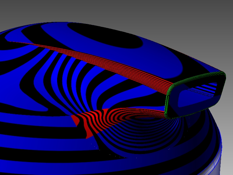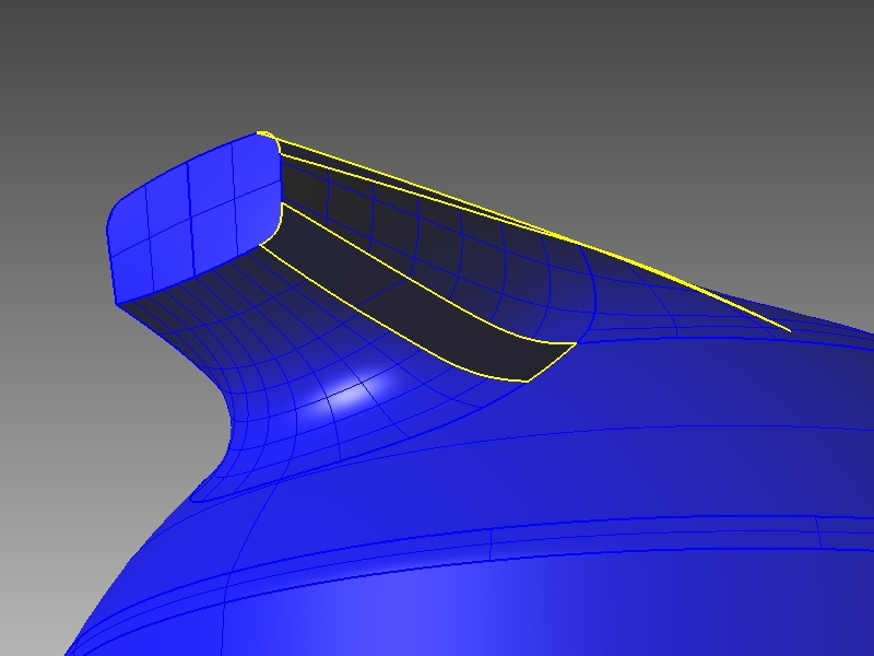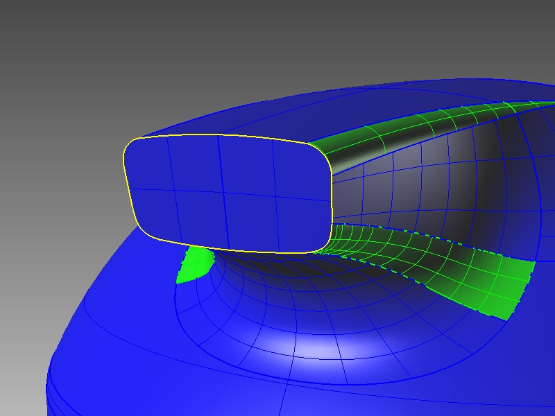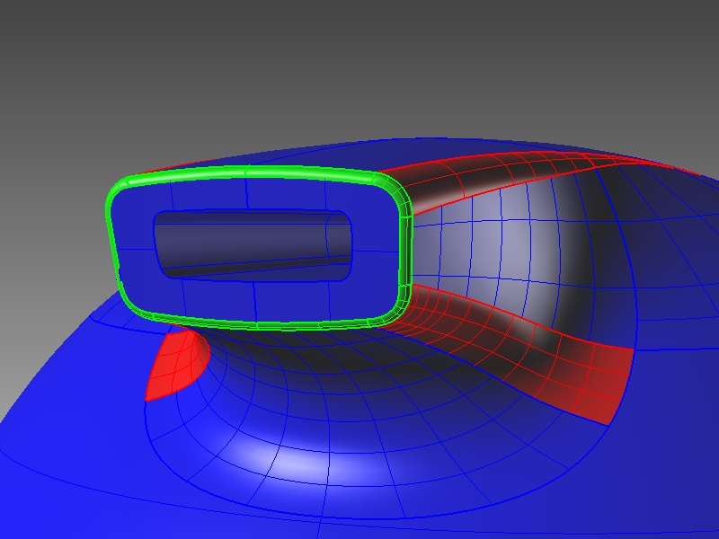 うまく処理ができれば、レンダリングしてもゼブラマッピング等でサーフェスの評価を行っても、美しいサーフェス間の処理が出来上がるはずである(Fig-73、Fig-74)。