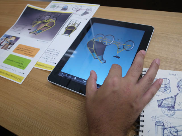 ●はじめに iPadの登場から3カ月が経過した。会議の場や電車などで使用するビジネスマンの姿をよく目にするようになってきた。著者も事前予約注文をずいぶん悩んだが、結局様子を見るということに一旦は決めた。ところが販売開始の1週間後、あるアプリの登場がきっかけとなって、購入をあっさり決めてしまった。それが今回紹介するiRhino 3Dである。もちろん発売前から、仲間内では画面に直接スケッチをするSketchBook Proや、プレゼンテーションアプリの本命であるKeynoteのiPad上での活用が話題となっていた。しかし、実際にiPadを購入するとなると、もう1つ背中を押してくれるデザインツールアプリが必要であった。そんなところに登場したのがiRhino 3Dである。 まず1回目として最もプロダクトデザインらしいアプリであるiRhino 3Dを取り上げてみたい。2回目以降に話題のSketchBook Pro、Keynote、そしてプロダクトデザインの現場で活用できるツールをいくつか紹介していきたい。 ●立体を伝える最強ビューワ もはや説明の必要がないほどプロダクトデザインのスタンダードツールになっている3DサーフェスモデラーRhinocerosのiPad、iPhone、iPod touch用のビューアアプリケーションがiRhino 3Dである。実際に著者もiPadとiPhone 4両方にインストールしているが、画面の小さなiPhoneでは自分一人で見るのがやっとで、人に見せて伝えるためのツールとしては正直厳しい。この点、9.7インチの大きな画面を持つiPadで伝えられる情報は大きい。これは実際に使ってみるまで予想がつかなかったが、単純に表示部が大きくなることで、自分とデバイス、自分と他者のインタラクション、コミュニケーションの深みが変わってくる。 iRhino 3Dにおいてもこの差異は大きく、自分で作成した3Dモデルの確認はもちろんのこと、コラボレーターやクライアントに対する検討会議やプレゼンテーションにおいても大きな効果を発揮する。机の上に平らに置くコミュニケーションは、従来のPCの威圧的な存在感とは異なり、同じ画面の中のデザインモデルを両者でともにゴールへ向かっていく舞台が出来上がるように感じている。