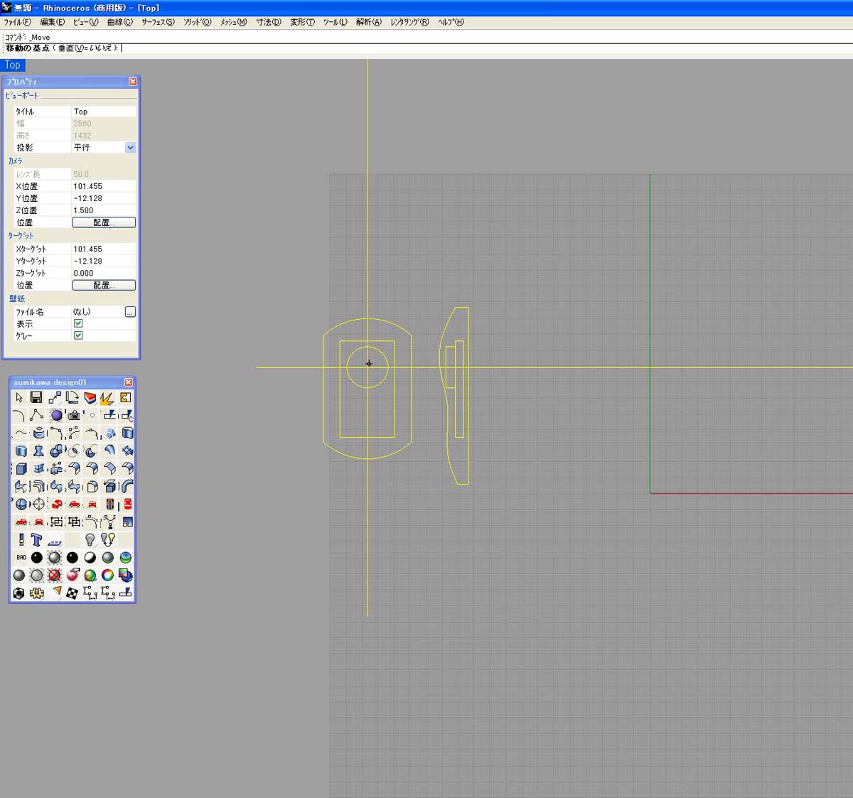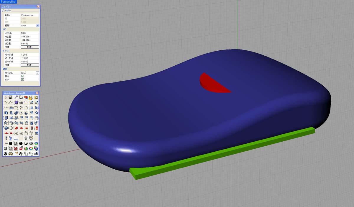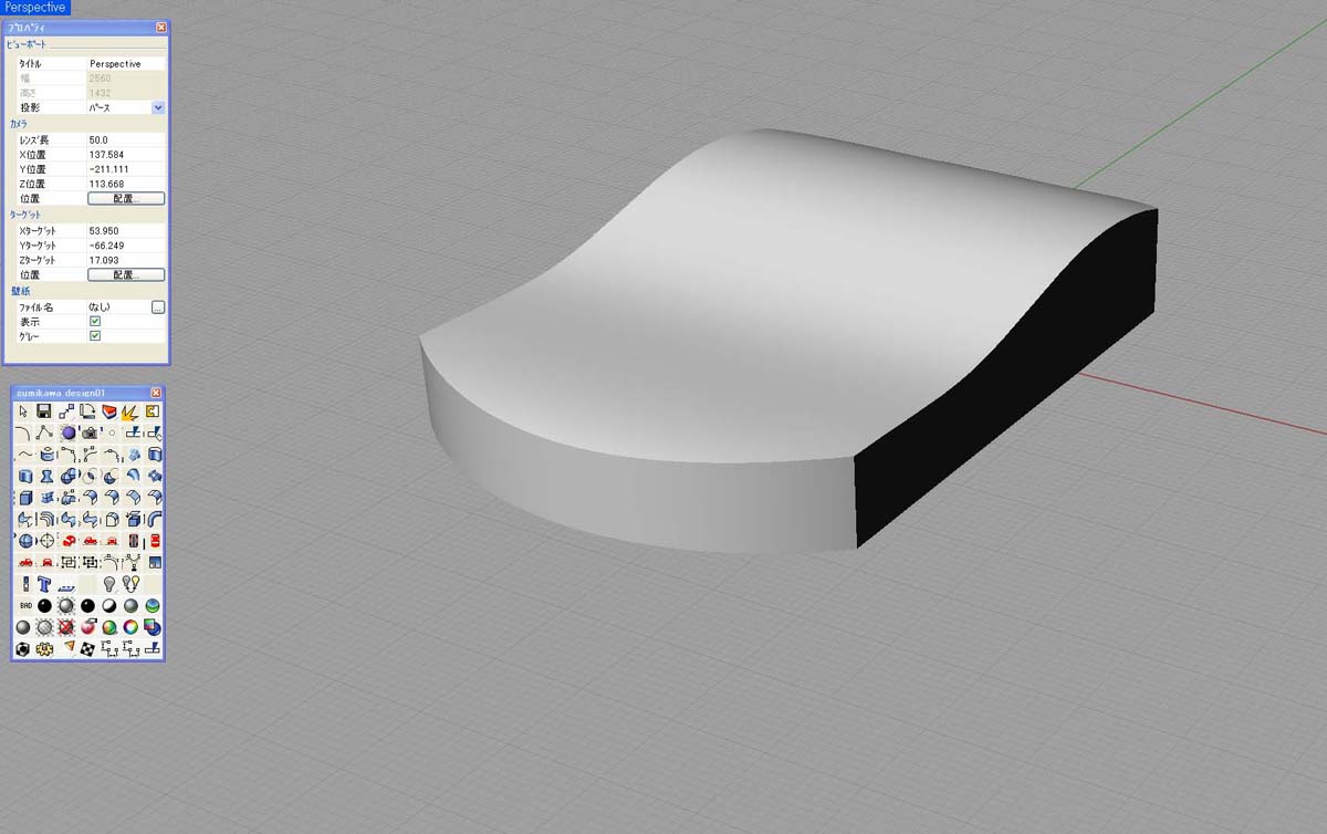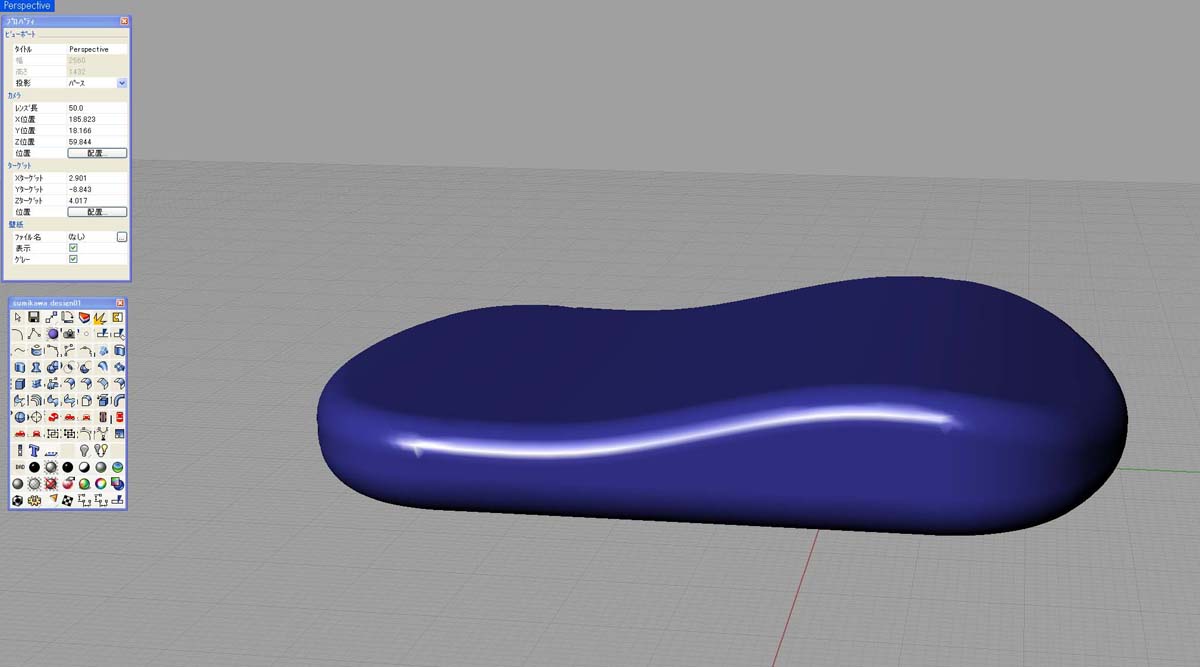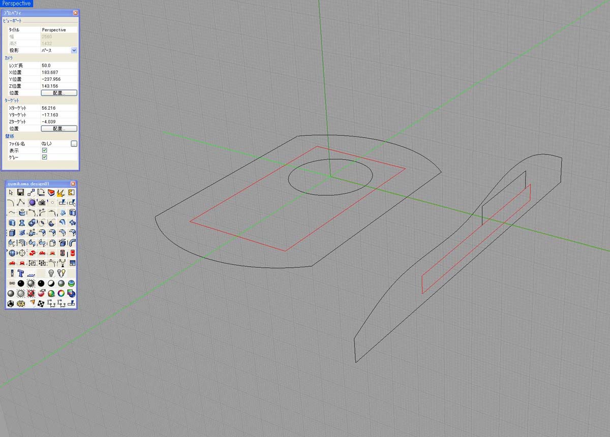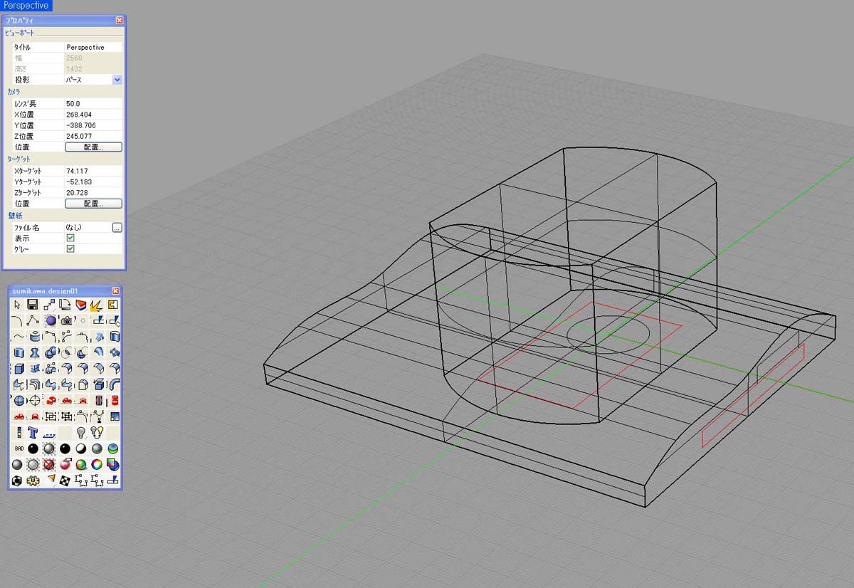 ●3Dは2Dから 3次元CADの基本はまず、2次元での図面作成がしっかりとできることが前提となる。 少なくとも、プロダクトデザインを専攻している学生であれば、このあたりのスキルは学校で確実に身に付けていなければならない。寸法の入れ方はまだしも、最低限は3面図や断面図の概念を把握していないとここから先には進むことができない。デザイナーはエンジニアから送られてきた部品図面を読み解く能力が不可欠である。実際のデザインの現場では作業が3次元で進んでいても、2次元図面での確認作業が頻繁に起こるということを、頭の中に入れておいてほしい。 2次元図はRhinoceros上でダイレクトに作成していくことも可能であるし、使い慣れた2次元CADで一気に作ってそれを、Rhinoceros側で読み込んでもかまわない。そのときに注意するのは2次元のCADは最低限、DWG、DXF、IGESでのフォーマットの書き出しと読み込みが可能であることだ。設計者のデータなどの互換性が確保されていることがモノ作りの現場では極めて重要なのである。そして3次元の形状はこういった2次元図をガイドとして製作していく場合が私の場合はほとんどである。 ●造形の基礎を身につけるには? すべての作業を3次元CAD1本でこなすことも不可能ではない。しかし、他のツールと併用していくことが結果的にはいいデザインを作り出していく早道であると確信している。例えばその代表的な作業が発泡スチロールでの形状作成の作業。2次元図面をプリントアウトして、型紙を作成し、それをガイドとして熱線カッターなどで発泡スチロールをカットしながら形を作っていくのである。実はこの作業そのものが、3次元CADでデザインするときの基本になっていくのである。これから学ぶであろうブーリアン演算や回転体の概念はこれらの作業でもう無意識に頭の中に組み込まれていることになる。 Rの大きさや比率など、まずは自分の手でしっかりと経験してからのほうが、3次元での造形も楽になる。ぜひ、学生時代にはそういった日々を送ってほしいものだ。私が以前在籍していたソニーのデザインセンターでも、ベテランから新人まで、頻繁に発泡モデルを作成していた。逆に言えば、発泡モデルできれいなデザインが作れなければ、絶対に3次元できれいなデザインは作れないということをまずは認識すべきである。 ●2Dから3Dへのアプローチ例 では、ここで具体的な作業を画像でご紹介していきたい。