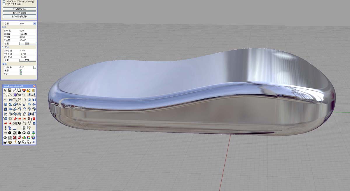 これらのプロセスで、2次元図から3次元へ形状を作っていくことが把握できたと思う。重要なのは、今後出てくるデザインのバリエーションにおいて、基準となる座標を必ず共通の原点に合わせておくことである。原点を合わせることで、微妙なサイズの違いの確認が可能になり、エンジニアとのやり取りでもミスを防ぐことができるのだ。 実際のデザインの現場では、「この部品をあとY軸方向に3ミリ移動」というようなやり取りが頻繁に起きる。そういう対応にも正確に処理できるように、基準点の概念は初期段階でしっかりと身に付けておきたい。その基準は2次元図の段階からしっかりと定めておくこと。 次回は、最初の壁となるであろう、フィレットの作業について述べようと思う。 |