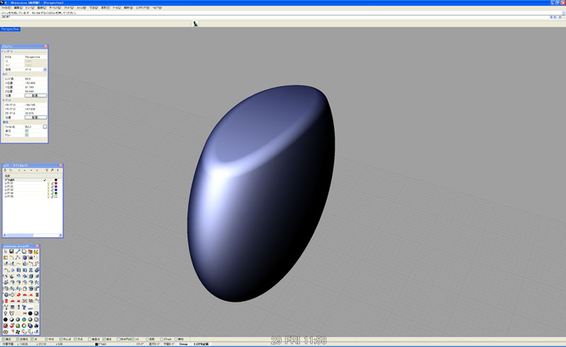 ●ローリングボールには注意! 上記のように、辺が直線の場合はあまり影響がないのであるが、辺が、例えば楕円のような形状にフィレットをかける場合に、特に注意しなければならないことがある。あらゆるCADで一般的なのが、ローリングボールというRの加工法である。これは文字通り、ある大きさのR「球体」を指定したエッジに沿って転がしてできた面でフィレットを作成する方法である。理論的には分かりやすいのであるが、実はこれが曲者であり、私自身はこのローリングボールでできたフィレットを使わない場合が数多くある。要はRのかかりしろの距離が面構成に応じて微妙に細くなったり変化するのだが、この急に細くなる部分に不安定な要素を感じる。Rhinoceros 4.0以上であれば、フィレット作業の際、画面上部のコマンドオプションでフィレットのレールタイプを選択可能になっている(画像3)。この三種類のフィレットを比較してみたい。 まずは、一般的なローリングボールでのフィレット(画像A)、エッジからの距離一定のフィレット(画像B)、レール間の距離「弦幅一定」のフィレット(画像C)。実は同じ数値のRを入力しても、出てくる結果としてはこれだけの差が生じてしまう。それだけに単純な数値だけでRを判断するのは禁物である。1枚の絵だけでは少々分かりづらいと思うが、実際に画面で形を回転させてみれば、その差は非常に感じられる。私の場合は、このような楕円エッジのときには、エッジからの距離一定のフィレットを選択するようにしている。視覚的にも丸みのある安定した形状が作成できる場合が多いからである。このように楕円や自由曲線では、Rのかけ方自体も注意していかないと最終的に出来上がった物自体が意図した雰囲気とずれてしまうことさえある。Illustratorなどの二次元スケッチだけでは絶対に気がつかない部分である。重要な部分であるだけに慎重に作業したい。