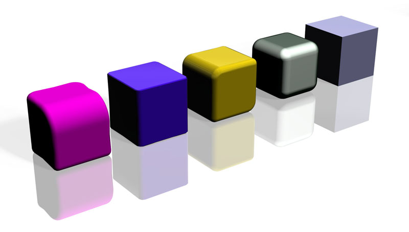 ●実は奥の深いフィレット 通常デザイナーが、1つの直方体に対して、単純にCADで全周R2とかという指示や加工をしていることは頻繁にあるケースである。しかし、フィレットは非常に奥が深いものであり、数あるデザイン作業の工程の中でも注意を払って考えるべき作業だといつも思っている。 以前、在籍していたソニーのデザイン部では、ベテランのエリートデザイナーがウォークマンのデザインで、稜線をR02にするか、R0.23にするかで丸1日さんざん悩んでいた光景が、当時入社したての自分の眼には今もしっかりと焼きついている。Rの数値を決定するのはベテランでさえ難しいのである。美しさや持ったときの感触、製造工程での制約などさまざまなことを満たすRを設定しなければならない。そういう1つ1つのフィレットの集合体がデザインだといっても言いすぎではないはずだ。 ●フィレットの概念 私自身は三次元におけるフィレットとは、「面と面の接合部のシャープエッジに対して、そこを円弧の断面でつないで丸めていくこと」と認識している。実はここでいう「円弧」というのがポイントで、一般的には直線であればそれはC面と呼ばれ、シャープで堅牢なイメージを表現できるし、この他にも円弧以外にも曲線はいろいろとあるわけで、例えば楕円の一部を使用する場合もあれば、放物曲線などの関数曲線でつないでいくことでも奥の深い表情を形に与えることができる。さらに、場所に応じて曲線のカーブ自体を変化させて回し込むことも実際のデザインの現場では頻繁に行われることである。 フィレットという言葉を拡大解釈すれば、基本形状に対して無限大のデザインバリエーションが可能であり、一言で「ここにフィレットを作成」では済む問題ではない。「ある部分をナイフでそぎ落として別な形状で埋める」というような解釈のほうが実際は正しいかもしれない。 ●直方体のフィレットはリズム 工業製品のほとんどは、基板や液晶画面などの基本形状が板状の長方形である関係で、それをパッケージングする外形も直方体となる場合が非常に多い。通常は、バッテリー部分だけが膨らんでしまい、その部分をうまく回りの形に馴染ませるなどの処理をしていくのが一般的である。 サイコロのように、完全な立方体の場合であれば、すべての辺に同じ数値でのフィレット処理を施してもバランスのとれた形状が出来上がる。この場合は、フィレットとフィレットのぶつかる角部分は球体の8分の1の面が現われることになる(画像1)。しかしながら、実際のデザインの現場ではこのような完全立方体を使うことは非常に珍しい。実際は、縦横高さの比率が異なる直方体として基本形が存在する。比率の異なる直方体の場合、同一の数値でRを回すとなんとも落ち着かない。これは、それぞれデザイナーの好みの問題もあると思うのだが、Rに関しては、大、中、小の三段階のバランスをうまく配置することで、デザイン自体にリズムが生まれてくる場合が多い(画像2)。変なリズムをとると逆効果になってしまうのであるが、こればかりは自分の感性に頼って美しいリズムを作成していかなければならないであろう。