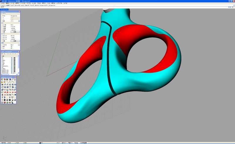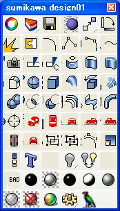 ここで、私がRhinocerosユーザーにお勧めするのが、オリジナルのツールバーの作成である。 デザイナーもある程度長くやっていると、自分なりの形のパターンのようなものが出来上がってくる。もちろん、デザインするアイテムや業種によってそのテイストは変化しているのであるが、それでも得意とする造形のパターンというものがだんだんと決まってくるようになる。これは、CADとかの作業手順などにも大きく影響が出る。 例えば、Rhinocerosに限らず一般的なCADでは、分厚いマニュアルの存在から分かるように、すさまじい数のコマンドが用意されている。デザイナーがこれらのコマンドをすべてマスターしなければならないという必要性はまったくない。おそらく、一生使わないであろうコマンドも多くあるはず。要は、壁にぶちあたったときだけマニュアルを開くというパターンで十分のはずである。 一般的にプロダクトデザイナーといっても、モノ作りの企画から提案モデルまでに関わる人もいれば、金型データやパッケージなど量産の最終段階まで関わるデザイナーもいる。当然、前者と後者では使う道具も異なってくる。デザイナーのスタイルによって同じソフトでも使う部分がまったく異なるということである。 今までこの講座でご紹介してきた2レールやフィレットをはじめとするこれらのコマンドだけで、実際にほとんどのデザイン業務はこなせてしまう。もちろん、その使用するコマンドは変化していってよいと思うのだが、ある程度自分自身で使用するコマンドが決まってきた時点で、オリジナルのツールバーを作成することを薦める。そして、初期設定のツールバーは隠してしまう。私の作業画面ではこのツールバーとオブジェクトのプロパティ、それとレイヤーが常に表示されている状態である。モニタのところでも触れたが、ビューの切り替えなどもピクトを直接選択することで、ワンアクションで済んでしまう。頻繁に使用するレンダープレビューの画面への切り替えや、HIDE/HIDE SWAPなども1カ所に集めることで操作しやすい。 フィレットの設定などの場合を除いて、メニュー画面で「読む行為」よりも、コマンドの図を「見る行為」のほうが圧倒的に時間がかからず、分かりやすい。ここでは参考までに、私自身が使っているオリジナルのツールバーの画像を掲載している。オリジナルツールバーの設定の仕方はメニューから、「ツール」「ツールバーレイアウト」を選択した状態でF1キーを押せば、非常に丁寧な解説が出てくるのでそれを参照していただきたい。Rhinocerosのヘルプは動画まで組み込まれており、非常に分かりやすく作られている。ここではヘルプには載っていないことだけをお伝えしたい。 ツールバーもランダムにレイアウトするのではなく、作業の階層ごとに間にブランクのコマを入れて仕分けをするとより使いやすくなる。現在ほとんどのコマンドがアイコン化されているが、時間があれば自分でさらにカスタマイズしてオリジナルのアイコンを作ることも可能である。HIDE/SWAPなども記号化させたらより使いやすいと思うが、そういいつつも、時間がなかなか確保できないでずるずると今日に至っている。あとはオブジェクトの色や光沢もダイレクトにアイコンで設定ができるし、Hayabusaのアイコンも含めることで完璧な状態となってくる。 ここでのオリジナルのツールバーの作成の目的は、あくまでも作業効率を改善するための手段である。同じ結果が出るのであれば、操作は1アクションでも少ないほうがいいに決まっている。そのアクションの積み重ねが最終的に絶対的な時間のロスの差となってくるからである。仕上がりが1日違うだけでまったく違う結果になってしまうのが現実である。時間的な優位性が確保できれば、自分が作った形を潔く捨てて、より優れた新たな形状を作る決心もしやすくなるというものだ。形は作ってみないと分からないのである。 |