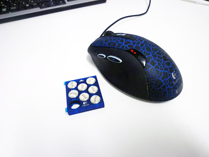 私がここ2年くらい落ち着いて使っているのは、ロジテックのゲーム用の高性能マウス(写真2)。それまでは、やはりロジテックのワイヤレスレーザーを使っていたのだが、2年くらいで充電池のほうが寿命になってきたりというスパンで買い換えてきた。現在のゲーム用は、コードはあるものの、ウエイトを調整できるようになっていて、自分のしっくりくる重さでマウスを調整できる。 最近はどうも軽いマウスが多いような気がするのだが、何十本も重なり合った線の束から1本を選択するような作業の多いCADでは、しっかりしたウエイトのものが安定して作業ができると思う。そして、ポインタの加速は最大に設定することで広い30インチの画面でもストレスなく動き回れることになる。
