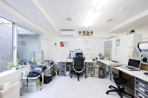 ●Rhinocerosで得られるもの 私自身がRhinocerosを使用している理由は、その「スピード性」に尽きる。モデリングの時間をできるだけ短縮して、節約した時間を形状の見直しや他のデザインバリエーションの展開に使えるからである。 通常、モデリングを開始して10分も経っておよその形状が画面上に現れてくると、それを見ながら頭の中でもっといい形状がひらめいたりする。そんなひらめきが新鮮なうちに3次元の疑似物体にしておくことで、精神的にもストレスなく安心に作業を進めることができる。そのひらめきの電気的な信号のようなものは、トイレに行ったり食事を挟んでしまうと、妙に気が乗らないものに変化してしまっている場合が多い。とにかく勢いで形を作ってしまうに限るのだ。 また、たいていの場合、デザイン作業が最初のモデリング一発で完結することはまずあり得ない。落ち着いた頃に、設計者からメールで中にボードが入らないだとか、途中で電池のサイズが大きくなったりという変更は入るのが通常の流れである。そういうときは修正レベルではなく、モデリングそのものを最初からゼロベースで作り直ししなければならないような事態になるものだ。そんな非常事態でも頼りになるのは自分自身のモデリングのスピードなのである。今回は、そのスピードアップのための作業環境について見直しをしてみようと思う。PC自体のCPU能力に関しては、速ければ速いに越したことはないのは当たり前なので、今回はPC本体以外の部分に触れることにする。 ●モニタ まず、大事なのは作業する画面サイズである。20年前はまだ、非常に大きなドラフターで、有機溶剤を吸い込みながらひたすらレンダリングを描いていたり、それこそ数日間もドラフターに張り付くようにして図面を仕上げていたものだ。今でこそドラフターは使わなくなったが、小さいドラフターで大きいアイテムの実寸スケッチを描くのは、ほとんど拷問に近いものがあった。 作業スペースは大きいに越したことはない。大は小を兼ねるが、逆はあり得ないこととなる。同じことがパソコンでも言える。特に3次元CADを扱う場合には、画面は可能な限り大きいほうがいいと思う。私の場合は30インチの液晶を、付属のスタンドを外しダイレクトに机の上に立て掛けて使用している。スタンドを外している理由はドライアイ対策である。少しでも見上げるポジションが発生すると、眼を見開くような形が続くことになり極度に眼球が乾き、疲労度も上がる。画面サイズが大きくなればなるほど画面の中心が上に上がっていくので、この点は注意したい。映画館の最前列が疲れるのと同じ原理である。モニタは少しでも目線より下に配置したい。 そんな30インチでも、初期設定の画面のビューによる4分割はしていない。トップ、フロント、パースと単一のビューでのびのびと表示させるのが、結果的に作業が速く進んでいくような気がする。特に他のファイルから図形やラインをインポートした場合などは、原点のずれからとんでもなく離れた場所に着地していることがあるが、そんな場合でも広々とした画面であれば見逃しも少なくなる。写真1は、現在の私の作業環境である。