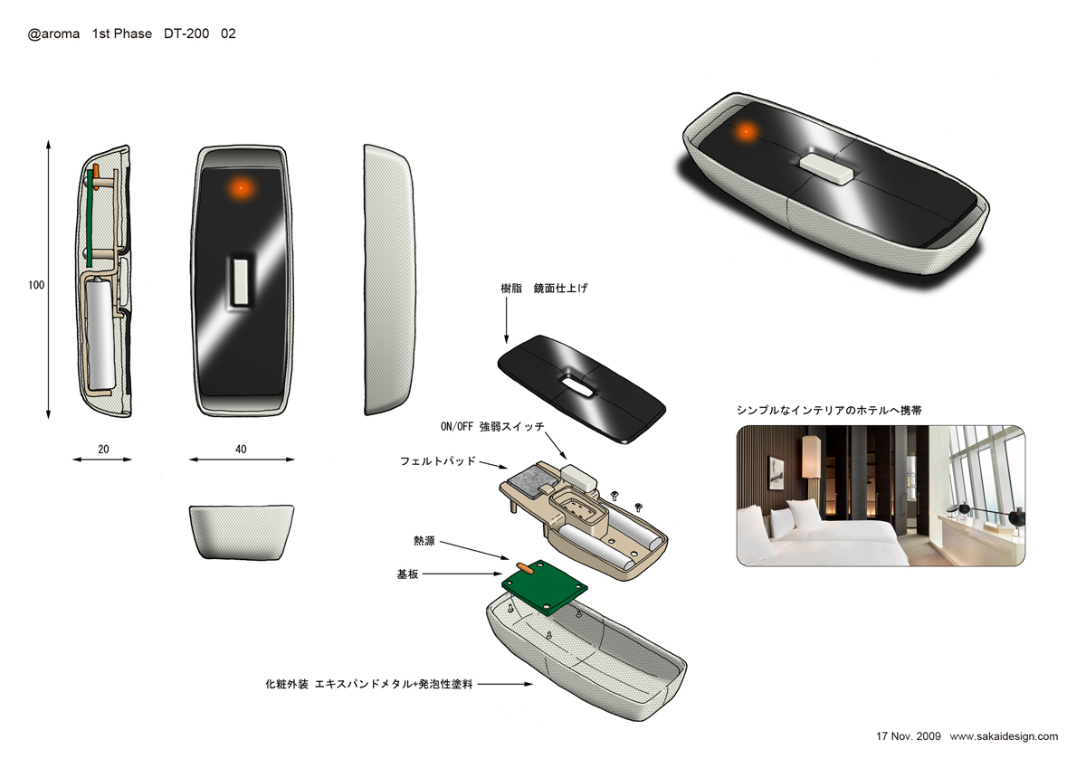 酒井氏による「アロマデフューザー」の手描きスケッチ (クリックで拡大)