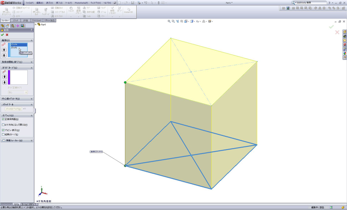 直方体や角柱の仲間でもある「立方体」ですが、工業(プロダクト)デザインという観点から見ると、この形状のまま製品とするにはハードルが高い形状の1つです。 なぜなら、プラスチックや金属で作られている製品の多くは、量産を前提とした製造工程において、なんらかの「型(金型など)」を必要とし、その「型」に材料を注入して成型した後は取り出さねばなりません。一般的な型構造の場合は、抜くための角度(抜き勾配)が必要です。しかし、その角度をつけたとたん、形としては「立方体」ではなくなり、「立方体である! 」という意味やメッセージも伝わらないことになるからです(画像2)。 3D CADや3D CGソフトでは、あっと言う間に造形できてしまう形の1つである「立方体」も、その形状を純粋に具現化しようとすればするほど、「目的」と「理由」に加えて「製造方法」と「コスト」などのバランスが必須…ということになります。 「立方体」ではありませんが、auのデザインケータイ「neon」(画像3)は、タイルのような直方体をあえてデザイン表現の中心に置いていました。そのために外観の隣り合う面と面の角度が90度になるよう、抜き勾配がなくても製造できるように、金型にスライド機構を取り入れるなど製造方法にも工夫が凝らされています。 ●「立方体」をSolidWorksで作る では以下で、実際にSolidWorksを使って、「立方体」を作るプロセスを紹介します。 もちろん、工作の時間のように6枚の正方形を作って張り合わすことで「正六面体を作るぞ!」…という手法も可能ですが、それでは手間ばかりが増えてしまいます。では、どういうプロセスで作られるのか…というと、冒頭でも触れた「立方体」は「 角柱(四角柱)」の特別な形という…という見方を使って、(1)正方形の作図、(2)その正方形と、直交する方向に高さ(長さ)を与える…という手順で進めていきます。 具体的には「押し出し」ツールを使い、正方形の一辺と同じ寸法を設定することで「立方体」を完成させるという手順です。 第2回は「直方体モデリングの応用と使い道」です。 |