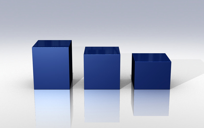 ●「立方体」は特別な形 「立方体=Cube」は、形としては私たちにはとても馴染みのある、正方形6枚が空間を取り囲む形です。イメージされるのはサイコロやルービックキューブ、角砂糖、塩の結晶などでしょうか? 別の言い方をすれば、さまざまなサイズの「直方体」のうち、各辺の長さがすべて同一(正方形)という、意味に強さを持ったときの状態が「立方体」なわけです(画像1)。 では、直方体の特徴は? と言えば、すべての面が長方形の六面体で、隣り合う面とは直角に接しているもの。また、この立体は、同じ平面図形を底面と上面とする筒状の形…ということから「角柱(四角柱)」の仲間です。「立方体」は「 角柱(四角柱)」の特別な形…という見方が、3D CADをデザインツールとするファーストステップです。