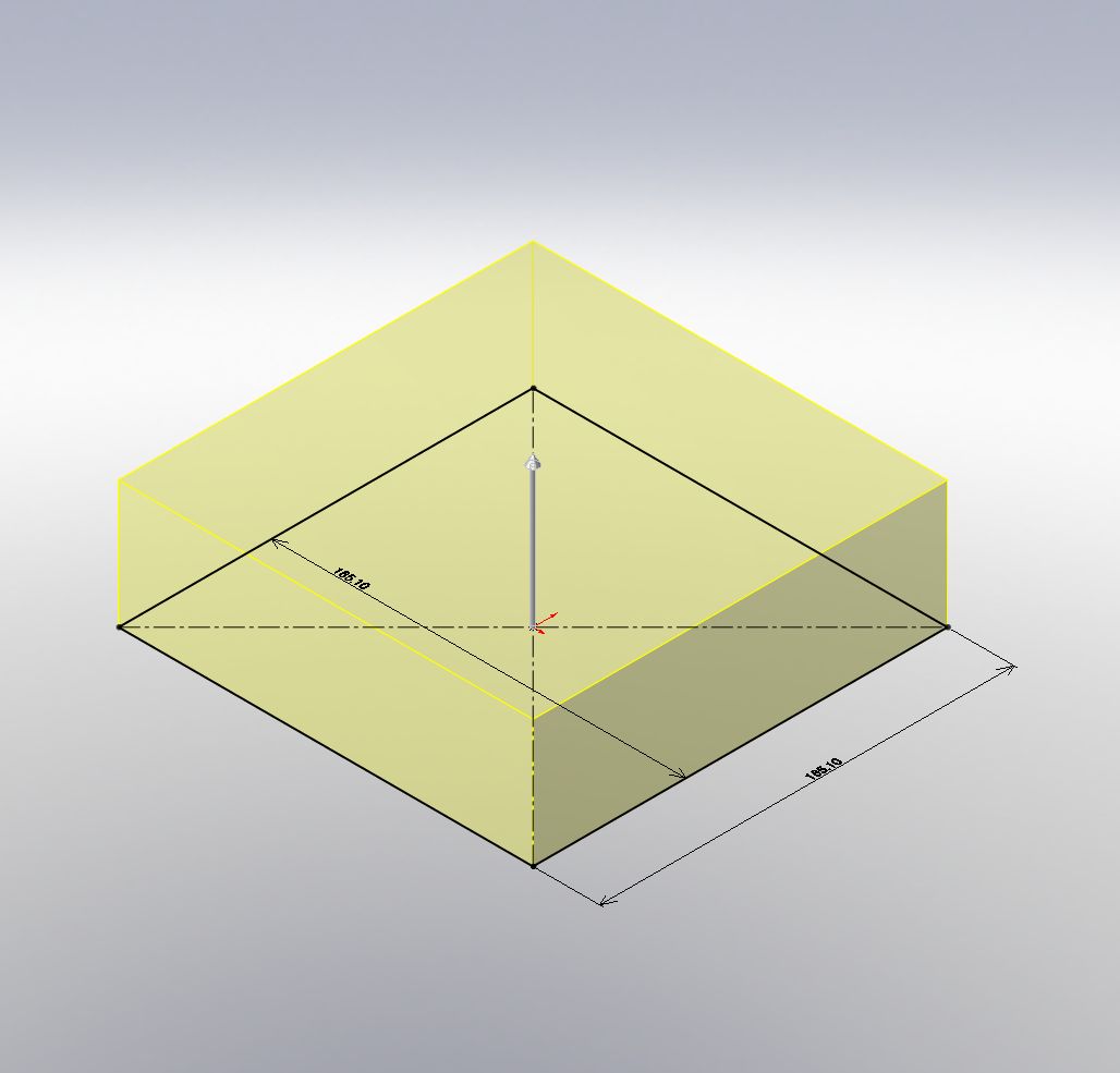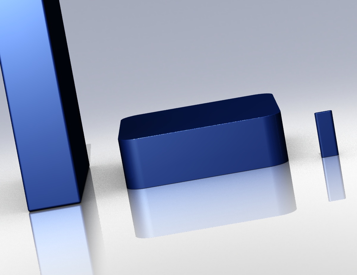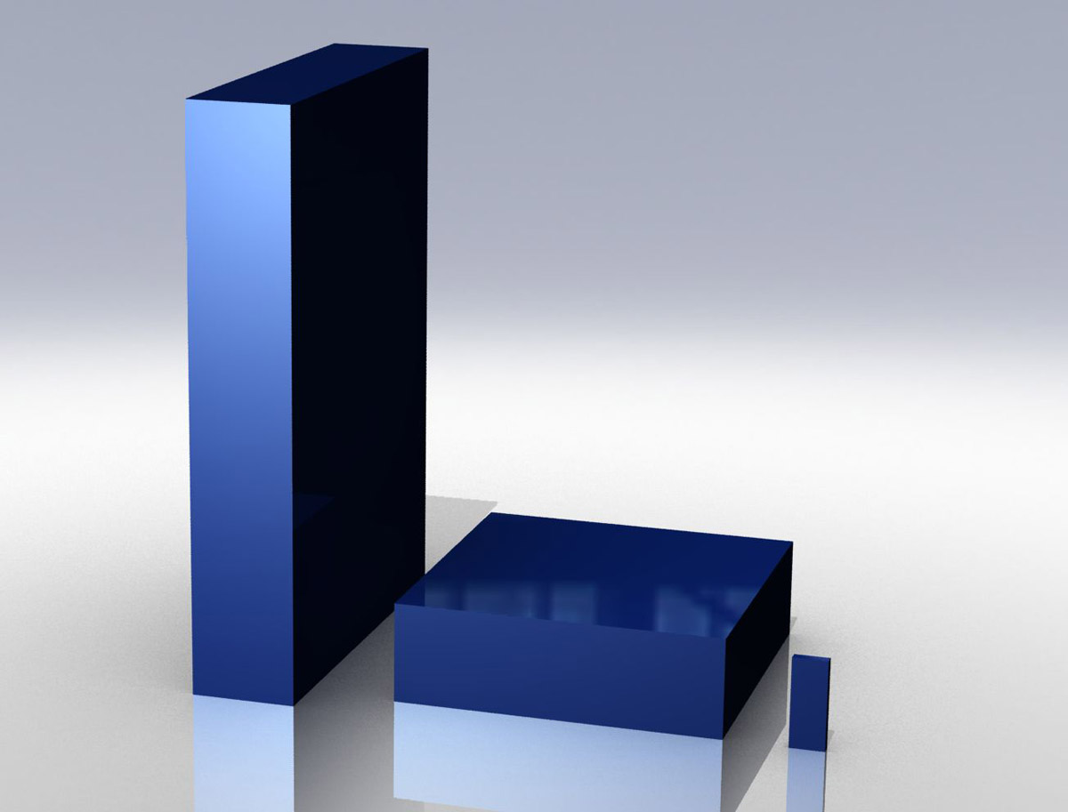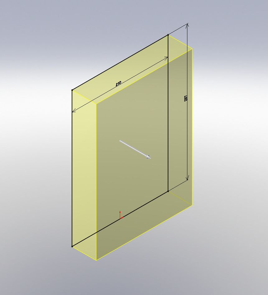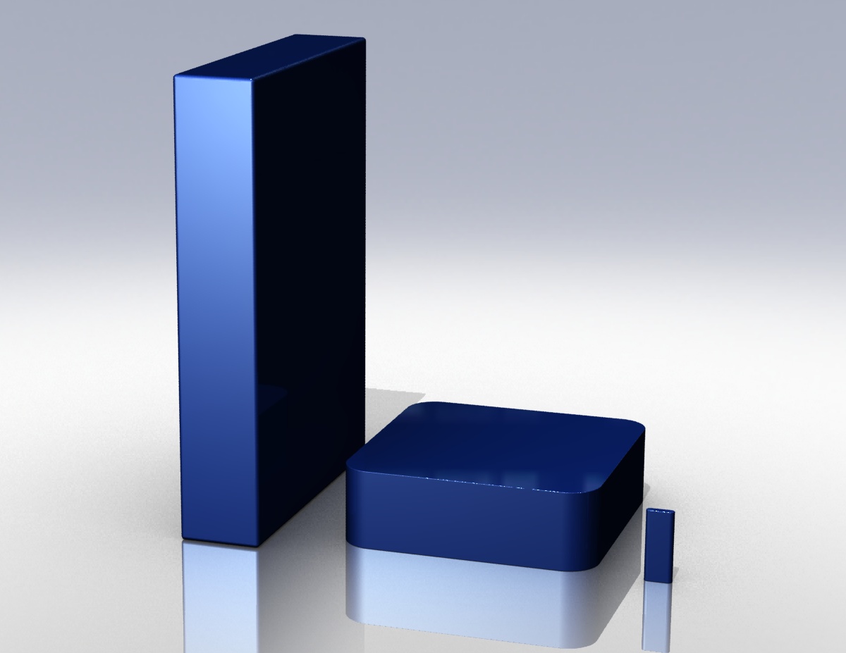 ●「直方体」をSolidWorksで作る SolidWorksでは、3D空間内のどこからでも「作図(SolidWorksでは「スケッチ」と呼ぶ)」が描け、その後「フィーチャー」と呼ばれる立体化するためのツールを用いてモデリングを行います。とはいえ、最初はどこから描いてよいのか戸惑う方も多いようです。SolidWorksには、基本的な作業平面として、正面(Front Plane)、平面(Top Plane)、右側面(Right Plane)が設定されていますので、まずはその3つから選んでスケッチを開始します(画像1〜3)。 前回の立方体の時は、「平面」を選んでスケッチを開始しましたので、今回は「右側面」を選んでスケッチを始めます。スケッチの寸法は…慣れ親しんでいるサイズということで「A4サイズ(210×297mm)」にして、その後「押し出し」ツールで高さ(奥行き)に53mmを与えて、直方体は完成です(画像4〜5)。 ●「直方体」は立体定規として使ってみる 「原寸=縮尺1/1」でデザインを考えること……これはプロダクトデザインに限らず、インテリアや建築設計においても重要な感覚です。デザインの世界でよく耳にする「スケール感」という言葉は、この「原寸」でのスタディーを経て得られるもの。モノを実体化させるために必要なリアリティが、この「スケール感」には染み込んでいます。 昔の設計事務所であれば、ドラフターや製図板にトレーシングペーパーというスタイルです。紙のサイズは液晶ディスプレイとは違い、その広さに限りがあります。書くまでもないことですが、A1サイズの用紙に、自動車の側面図を描こうものなら、縮尺を小さくしなければ全体は入りません。 ところが、3D CADやCGの画面では、「紙」によって制約されたスケールはありません。細部にズームしてしまえば、1ミリの隙間を50ミリくらいの幅に見えるように視点を調整できます。作図に使った「数字」が、デザイナーの頭や手の中で「ボリューム」として感じられていれば、何の問題もないのですが、3Dツールを使い始めた方には、ちょっと掴みづらい部分もあるかと思います。そういう時には、まずは「直方体」でスケールが体感できてるボリュームをモデリング…というのも有効な1つの方法です。 ●「プロポーション」を気にしながらモデリング 最初に「A4」サイズの直方体を作ったので、次は、平面にスケッチした正方形と、同じく平面にスケッチした細長い長方形から、「押し出し」ツールを使って、それぞれ直方体をモデリングしていきます。 話しは脱線しますが、人の視覚とは面白いもので、「見ているようでまるで見てなかったり」、「気にしてなかったけれど目が覚えてたり」なんてことが、しばしばあります。最初にモデリングしたA4サイズの直方体は、500枚が梱包されているコピー用紙の束のボリュームです。このプロポーションを使ったプロダクトデザインが±0の「A4ライト」という商品になっています。 次にモデリングした2つの直方体は、実はそれぞれ「Mac mini」と「iPod shuffle」のプロポーションです。どうですか? 質感は青くしてありますが、だんだん見えてきませんか?「Mac mini」と「iPod shuffle」に…。 カラーリングや質感に目が留りがちですが、実はちゃんとプロポーションも記憶されているのだから大事しなければならない要素です。カタチの中に「親しみやすさ」や「美しさ」などを見つけてあげられるのはプロダクトデザインならでは、の仕事ですから。
