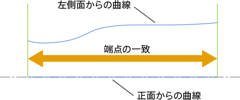 5.その際、2,3で作成した曲線の端点とY方向の距離が一致するようにしないと、短くなったり、意図したものとは違う形状になってしまう