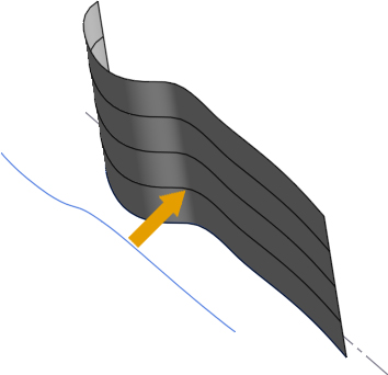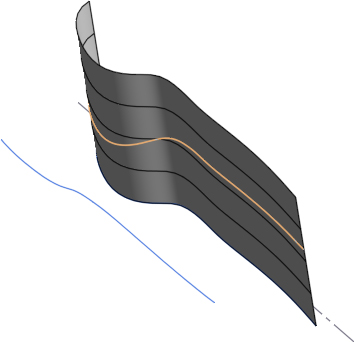 7-1.6でできた曲面に4、5で作成した曲線をX方向へ投影する