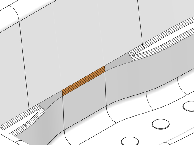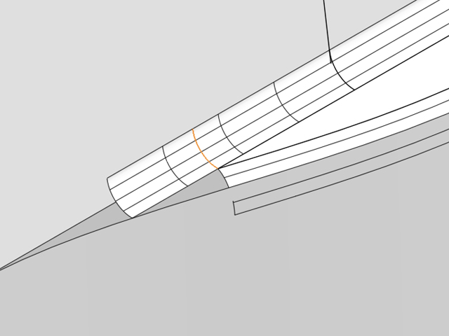 7-1.中央の直線部分から面を作成していくので、除変区間との分割ラインを作成(クリックで拡大)