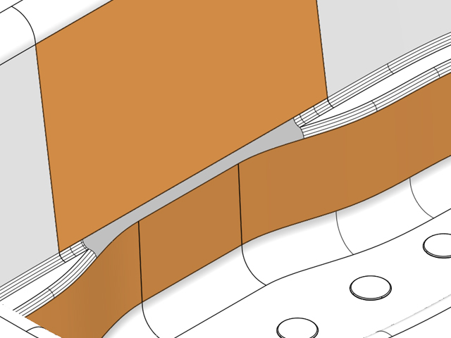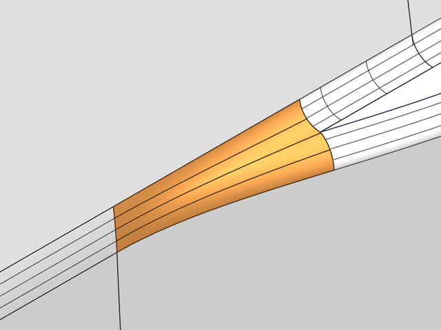 9.周りの曲面をサポートにして徐変部をロフト曲面で作成(クリックで拡大)