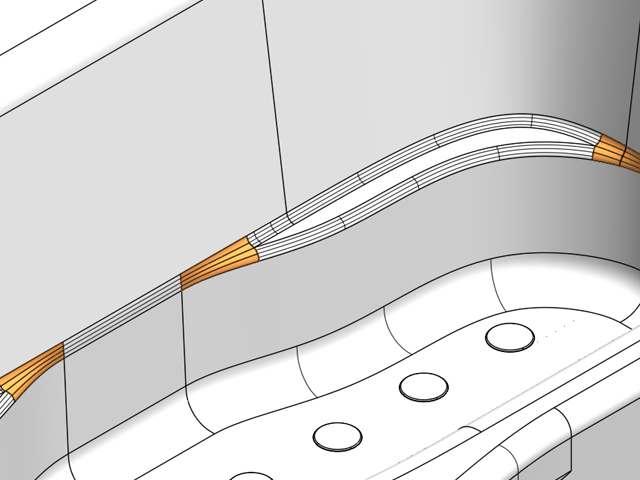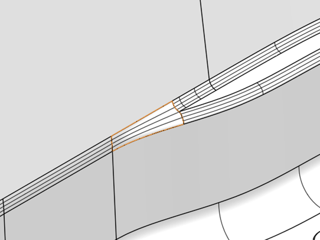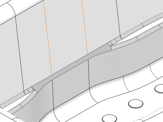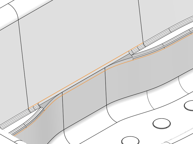 1-1.まずエッジ全体にフィレットを作成してみる。滑らかでないことが分かる(クリックで拡大)