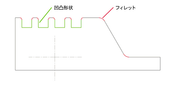 9-1.凹凸部とテーパー部にフィレットを作成する(クリックで拡大)
