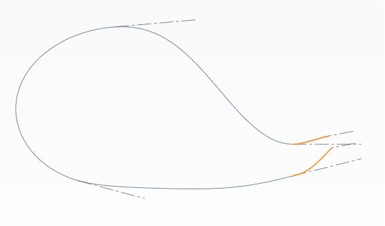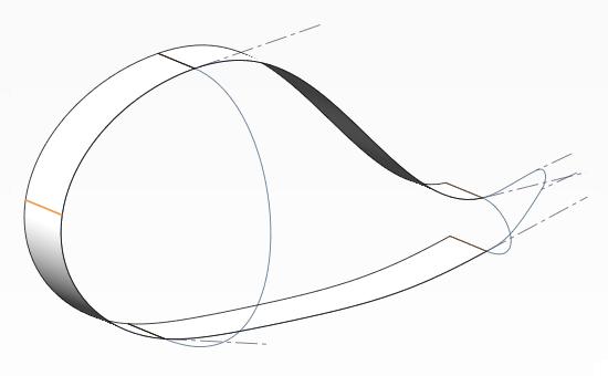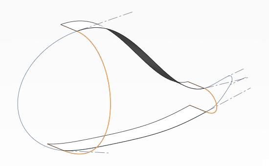 8-1.同様に尾びれ側もサポート曲面を作成して、任意の位置に交線を作成しておく(クリックで拡大)