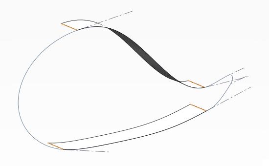 7.交線をサポートとして中間部に曲線を作成する(クリックで拡大)