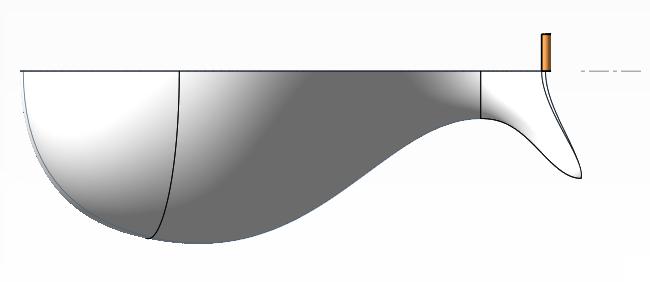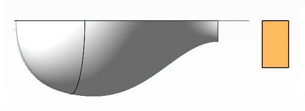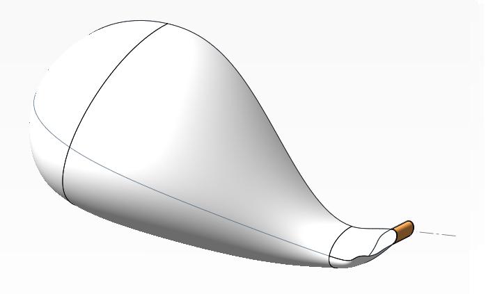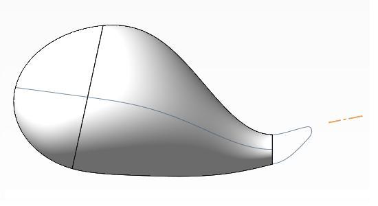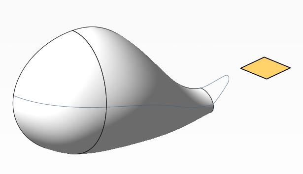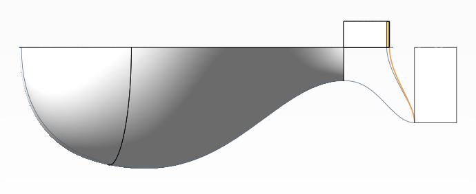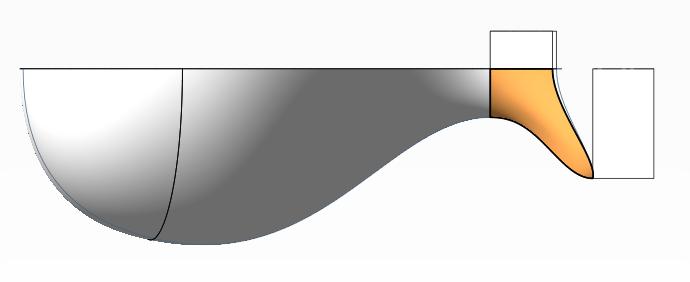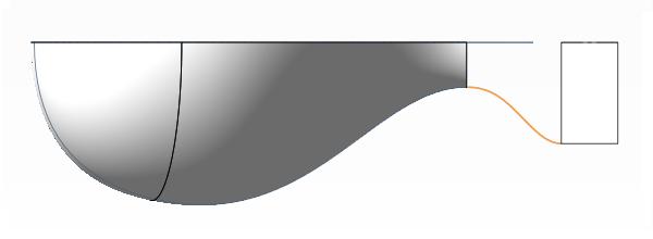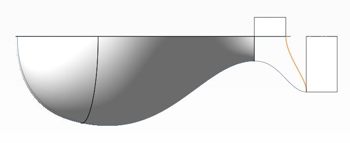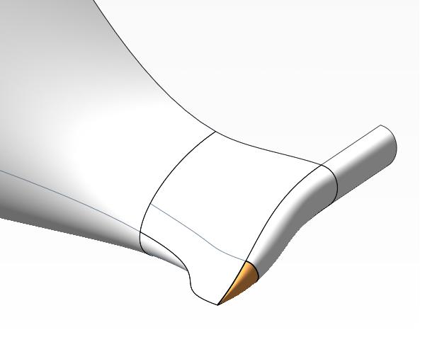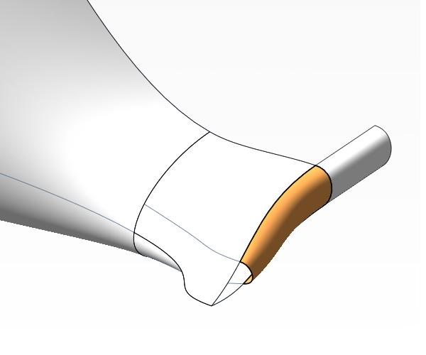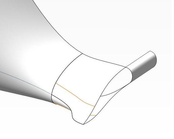 5-1.その押し出し面をサポートとして、3で作成した曲線の端点までのブレンド曲線を作成する((クリックで拡大)。