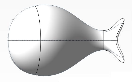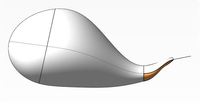7-1.これで4辺ができたので、胴体と4で作成した押し出し面をサポートとして曲面を作成する(クリックで拡大)