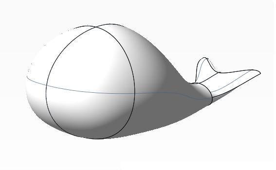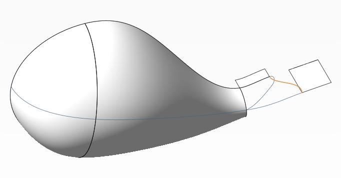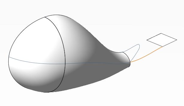 10.7、8で作成した曲面上に補助曲線を作成する(クリックで拡大)