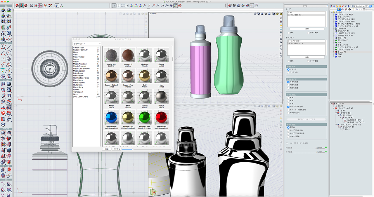 Evolveは、サーフェス、ソリッド、ポリゴンのハイブリッドモデリング機能と、フォトリアルなレンダリングシステムを搭載したデザインツールです。さまざまなデザイン案をかつてない早さで評価・検討・可視化できます。EvolveはMac OS XおよびWindowsの両方をサポートしています。すべての皆様を対象とした1ヶ月の体験版のご利用およびトレーニング(Evolve Cafe)のお申し込み、その他お問い合わせはsolidThinking@altairjp.co.jpまでお願いいたします。