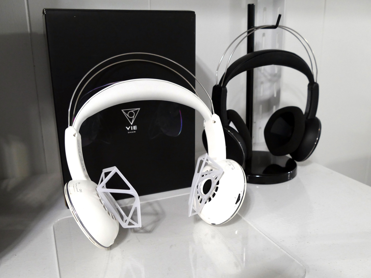 「VIE SHAIR」は親機と子機の切り替えができて、スマホにつなげた親機の音楽をBluetoothで子機に無制限に配信する機能を持っています。耳の周りが空いているので、音楽を聴きながら会話も楽しめます。例えばサイレントディスコのような、今までなかったヘッドフォンの使い方を目指しました。クラウドファンディングで5,000万円以上の支援をいただき、企画を持ち込んだヤマハからも活動資金をいただいて作りました。